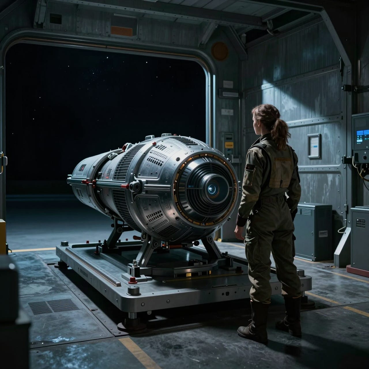 The Fold Drive sat in the cargo bay like a promise. Elena Vargas ran her scanner over the housing one more time, checking what she already knew. Clean power signature. Intact navigation arrays. No radiation leaks. The diagnostic pad showed green across every metric.