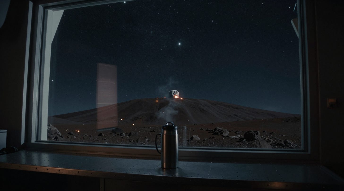 He poured the coffee. Set the thermos on the instrument shelf, cap side down, the way he always did to keep the condensation ring off his logbook. Pulled the rolling chair back to the primary console.