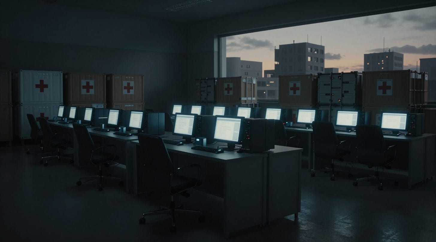 The pattern emerged within minutes. Every third cycle, the medical allocation for Relief Corridor Nine dropped. Never the same percentage. Never the same supply category. The reductions were careful, distributed across line items so that no single entry showed a dramatic loss. Antibiotics down twelve percent here. Surgical adhesive down eight percent there. Blood products reclassified from Type A to Type B allocation, which moved them to a different distribution pipeline with a different oversight chain.