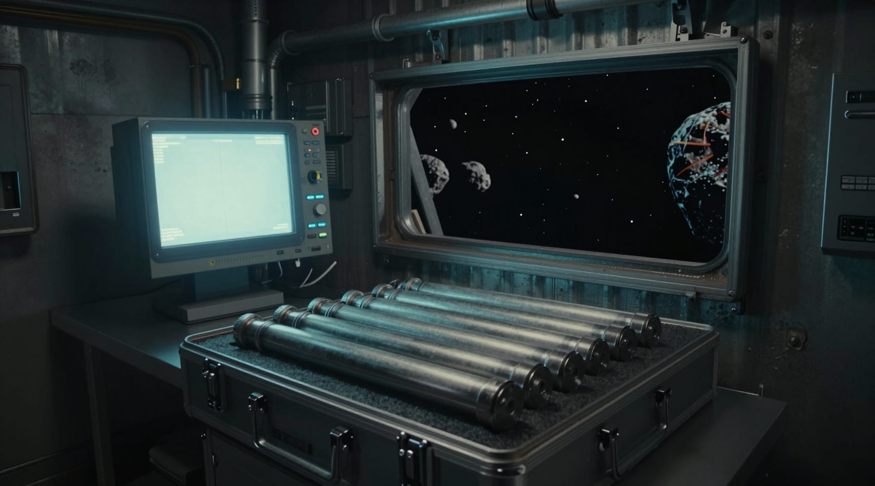 Six cylindrical objects, each the length of her forearm, nested in shock-absorbing foam. Brushed steel casings with serial numbers laser-etched along the flange. Magnetic coupling rings at both ends, polished to mirror finish. She recognized them before the spectrometer confirmed it.