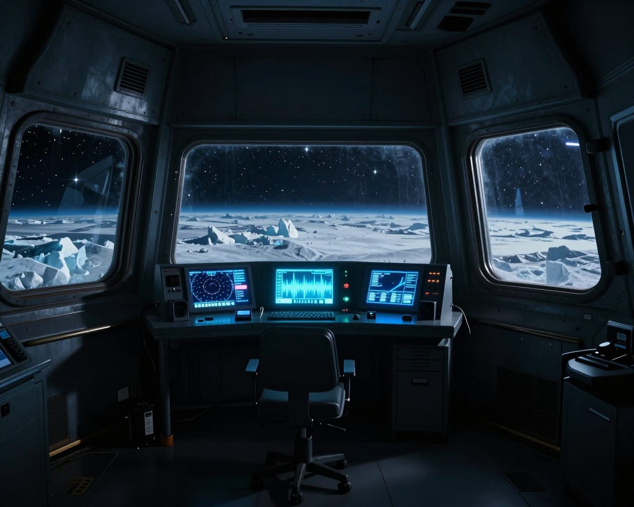 She leaned back in her chair, the leather cracked and peeling at the edges. The deep space monitoring station on Europa barely rated new equipment. Most of it went to the fleet. What remained trickled down to the colonies, then the outposts, and finally to places like this: a converted ice mining facility buried two kilometers beneath Europa’s frozen surface.