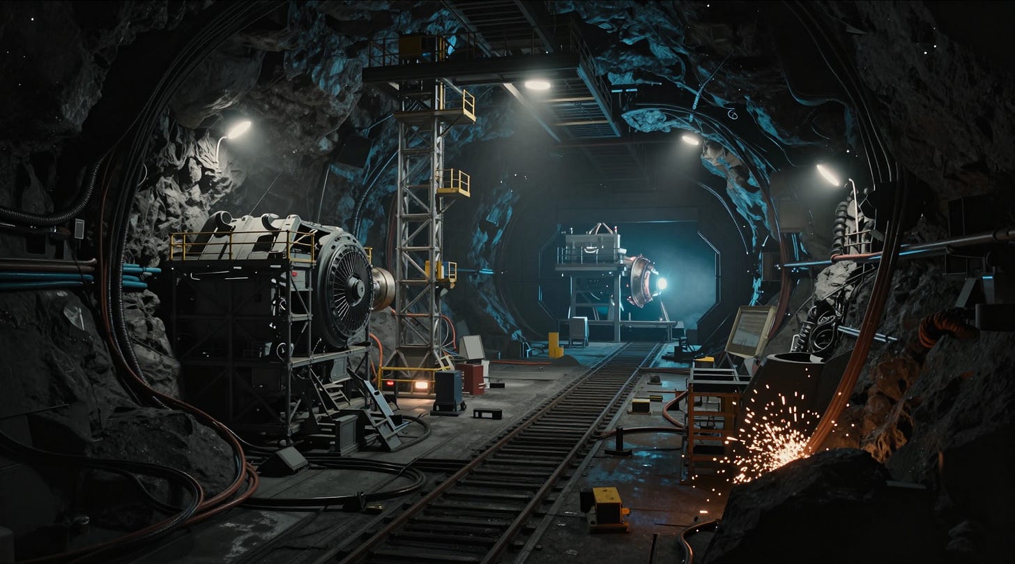Crane tracks ran the length of the asteroid chamber, bolted into rock. Hull sections hung in their slings like ribs waiting for a spine. No markings. No registry stamps. No names.