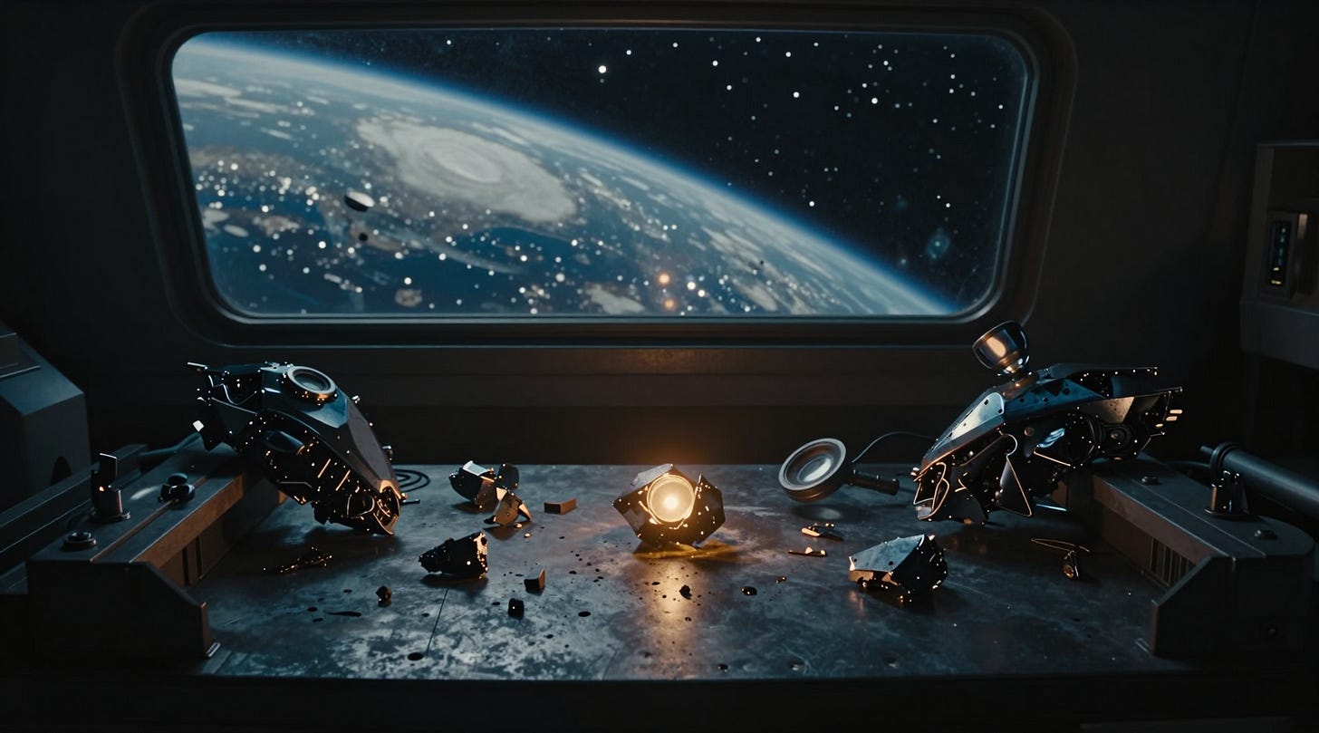 Arash returned to the bench and picked up his pliers. The next fragment in the processing queue was a silver-gray hull plate, thirty centimeters square, unremarkable. He clamped it, logged it, sorted it into the outgoing bin. Standard. Clean. Traceable.