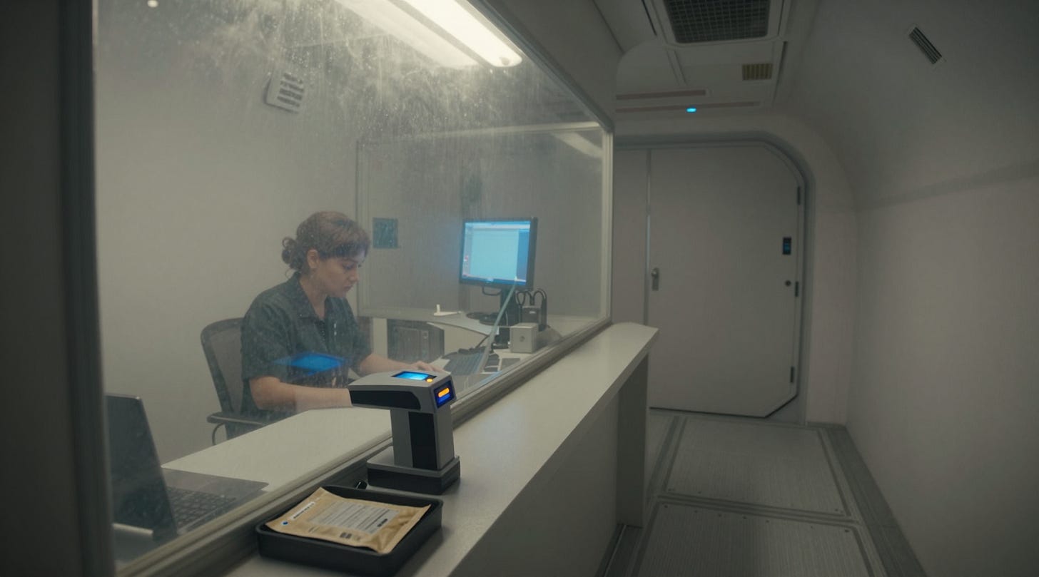 A knock on the partition glass brought her back up. The intake window had a thick polymer partition, a narrow speaker grille, a document tray at the bottom for chip and packet exchange. The man who had stepped to the window was in his forties, unremarkable build, civilian work coveralls with a Level Three maintenance classification badge. He placed a biometric chip in the tray and slid it through.