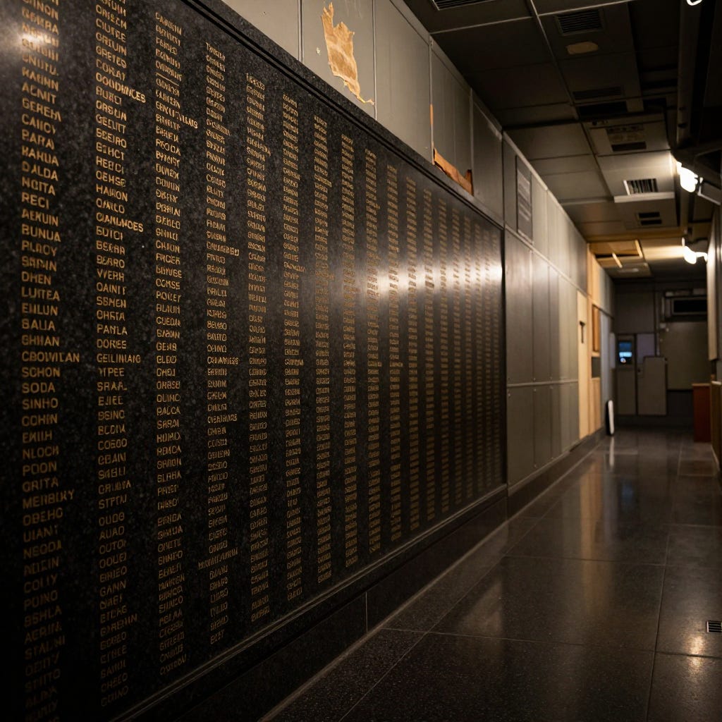 The memorial wall waited in Corridor Seven. Three thousand, four hundred, and twelve names catching the light. He would walk past it again tomorrow, and the day after, and every day until his service ended or the ship found another battle.